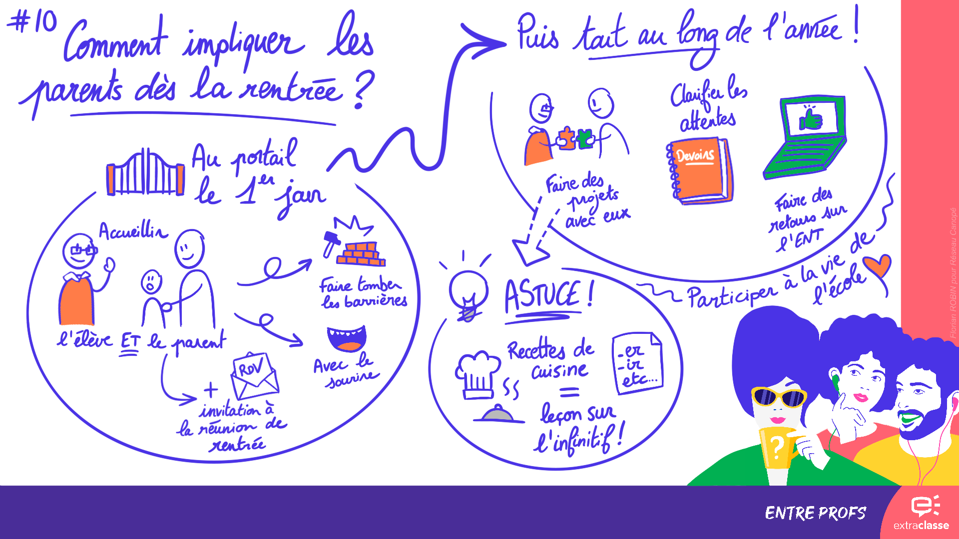 Nadia AmraniPour impliquer les parents dès la rentrée, ça se joue déjà au portail. Alors en tant qu'enseignante, mais aussi en tant que directrice d'école, j'aime être au portail pour accueillir mes élèves, mais aussi pour avoir toujours un petit mot chaleureux envers les parents, pour les saluer, pour avoir des échanges informels. Et ça permet de créer aussi une petite relation, d'enlever toute barrière entre l'école et la famille, ne serait-ce que pour partager un sourire. C'est d'ailleurs au portail qu'on va pouvoir relancer les familles pour leur présence à la réunion de rentrée. Réunion qui est très importante et qui malheureusement est souvent boudée par les parents parce qu'elle a un caractère assez austère. D'ailleurs, moi j'ai une petite astuce pour accueillir les parents en classe de manière plus conviviale et chaleureuse et originale. Donc en fait, pour la réunion de rentrée, je mets sur les tables les portraits des élèves qui ont été réalisés par eux-mêmes et les parents doivent s'installer à la place de leur enfant. Donc ça crée toujours un peu de sourire, des rires et voilà. Donc ça met tout le monde à l'aise et ça permet de bien débuter la réunion et de leur permettre de s'impliquer dans la suite à venir. C'est important de recevoir les parents dans de bonnes conditions, mais c'est aussi important de clarifier nos attentes. Par exemple, quand on leur dit qu'il y aura des leçons à apprendre, c'est important de leur dire qu'est-ce qu'on attend des élèves. Apprendre une leçon, c'est quoi ? C'est restituer les mots-clés ou apprendre par cœur ? Et je pense que quand on donne des pistes aux parents à ce moment-là, quelque part on les rassure et on arrive à les rallier à notre cause, et donc à la cause des élèves bien évidemment. Pour que les parents s'impliquent davantage dans la vie de la classe, Il est important de créer des projets avec les élèves ou des manifestations où les parents ont une part active, où ils peuvent participer. Alors moi, je travaille en éducation prioritaire renforcée et il est très difficile de rallier les parents à l'école, de les faire venir, de les mobiliser. Et je pense avoir trouvé une astuce que je vais vous partager. Je me suis rendu compte avec l'expérience que les parents aiment beaucoup partager leur savoir, leur savoir-faire, tout ce qui est en lien avec leur culture, avec leur histoire, avec ce qu'ils savent faire au mieux. Et ils sont toujours partants et toujours présents pour partager, par exemple, des ateliers de cuisine qu'on peut partager en maternelle, mais aussi en élémentaire. Il suffit simplement d'aborder l'infinitif des verbes et hop, on fait une recette de cuisine avec les parents. C'est très important de partager des moments positifs et de faire des retours positifs aux familles, parce que finalement, l'école, c'est un lieu d'apprentissage, mais pas seulement, c'est aussi un lieu de vie. Alors, moi, j'ai un blog. que j'alimente régulièrement via l'ENT et je publie tous les événements de la vie de la classe : les rencontres USEP, ça peut être également les recettes de cuisine qu'on a pu partager avec des parents ou des ateliers lecture, des ateliers jeux de société également. Les parents ont beaucoup de plaisir à voir leurs enfants dans ces situations de vie en fait parce que l'école c'est aussi un lieu de vie et bien évidemment ils sont beaucoup plus attentifs à leur scolarité. Donc en bref, pour impliquer les parents, je démarre dès la rentrée au portail et je nourris ce lien tout au long de l'année.